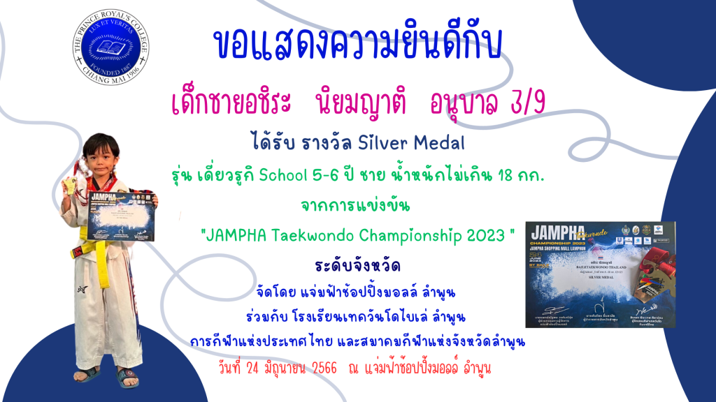 เด็กชายอชิระ นิยมญาติ รางวัลการแข่งขันเทควันโด