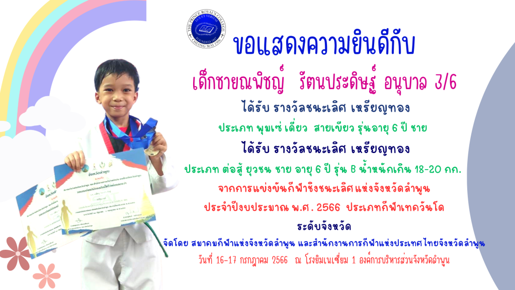เด็กชายณพิชญ์ รัตนประดิษฐ์ รางวัลการแข่งขันเทควันโด