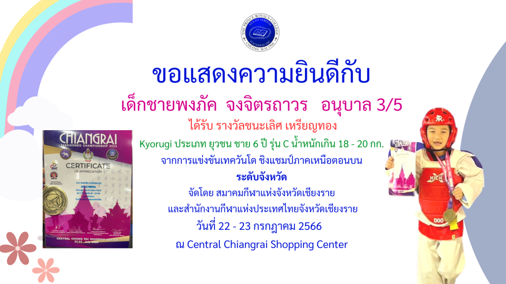 เด็กชายพงภัค จงจิตรถาวร รางวัลการแข่งขันเทควันโด