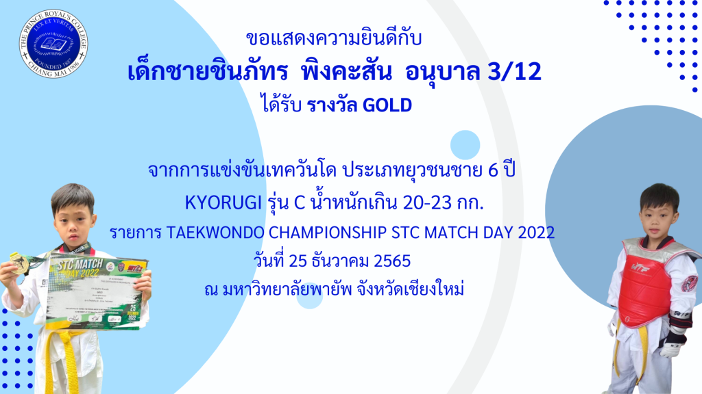 เด็กชายชินภัทร พิงคะสัน รางวัล GOLD การแข่งขันเทควันโด