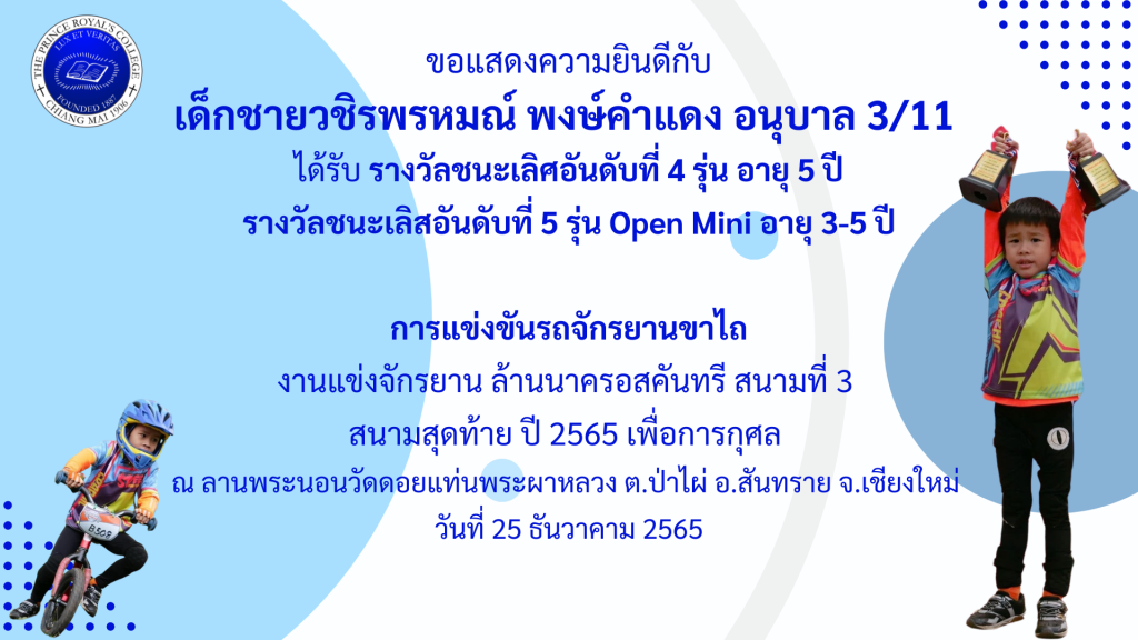 เด็กชายวชิรพรหมณ์ พงษ์คำแดง รางวัลการแข่งขันรถจักรยานขาไถ