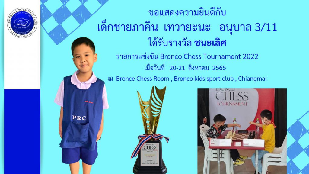เด็กชายภาคิน เทวายะนะ รางวัลชนะเลิศ การแข่งขัน Bronco Chess Tournament 2022