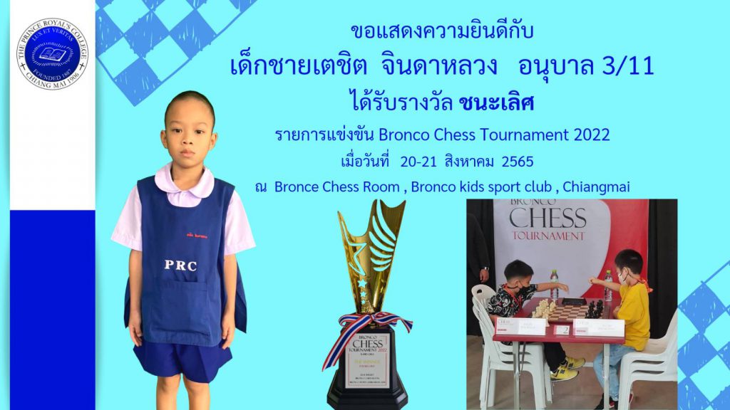 เด็กชายเตชิต จินดาหลวง รางวัลชนะเลิศ การแข่งขัน Bronco Chess Tournament 2022