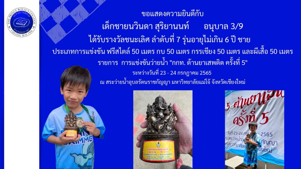 ขอแสดงความยินดีกับ เด็กชายนวินดา สุริยานนท์ อนุบาล 3/9 […]