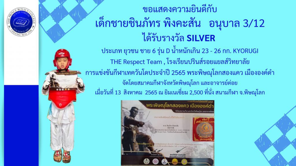 เด็กชายชินภัทร พิงคะสัน รางวัล SILVER การแข่งขันเทควันโด