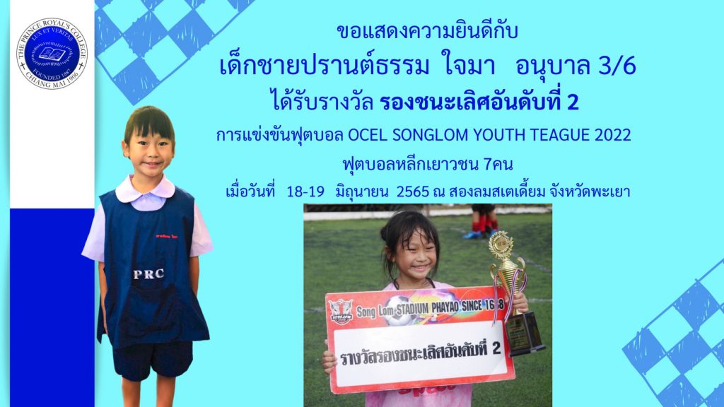 เด็กชายปรานต์ธรรม ใจมา รางวัลรองชนะเลิศอันดับที่ 2 การแข่งขันฟุตบอลหลีกเยาวชน
