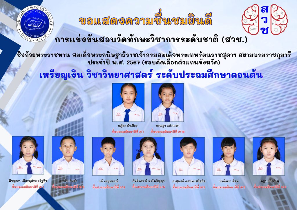 นักเรียนชั้นประถมศึกษาปีที่ 1-3 ที่ได้รับรางวัลจากการสอบวัดทักษะวิชาการระดับชาติ (สวช.) ประจำปี พ.ศ. 2567 (รอบคัดเลือกตัวแทนจังหวัด) วิชาวิทยาศาสตร์
