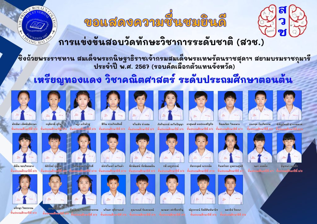 นักเรียนชั้นประถมศึกษาปีที่ 1-3 ที่ได้รับรางวัลจากการสอบวัดทักษะวิชาการระดับชาติ (สวช.) ประจำปี พ.ศ. 2567 (รอบคัดเลือกตัวแทนจังหวัด) วิชาคณิตศาสตร์