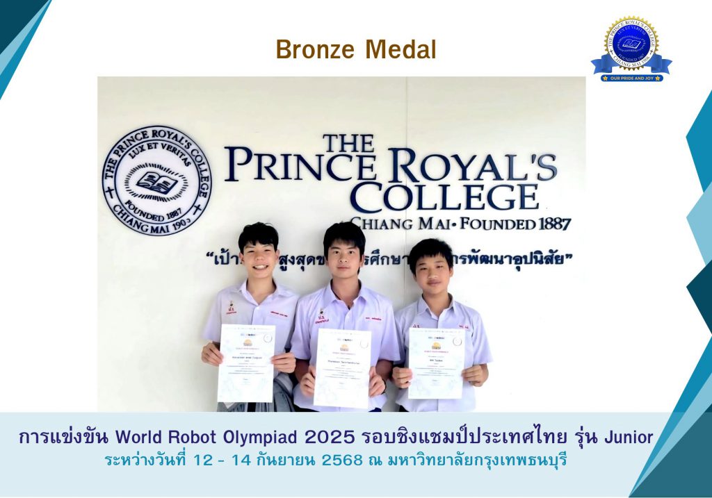 ทีมโรงเรียนปรินส์รอยแยลส์วิทยาลัย รางวัล Bronze Medal การแข่งขัน World Robot Olympiad 2025 รอบชิงแชมป์ประเทศไทย รุ่น Junior