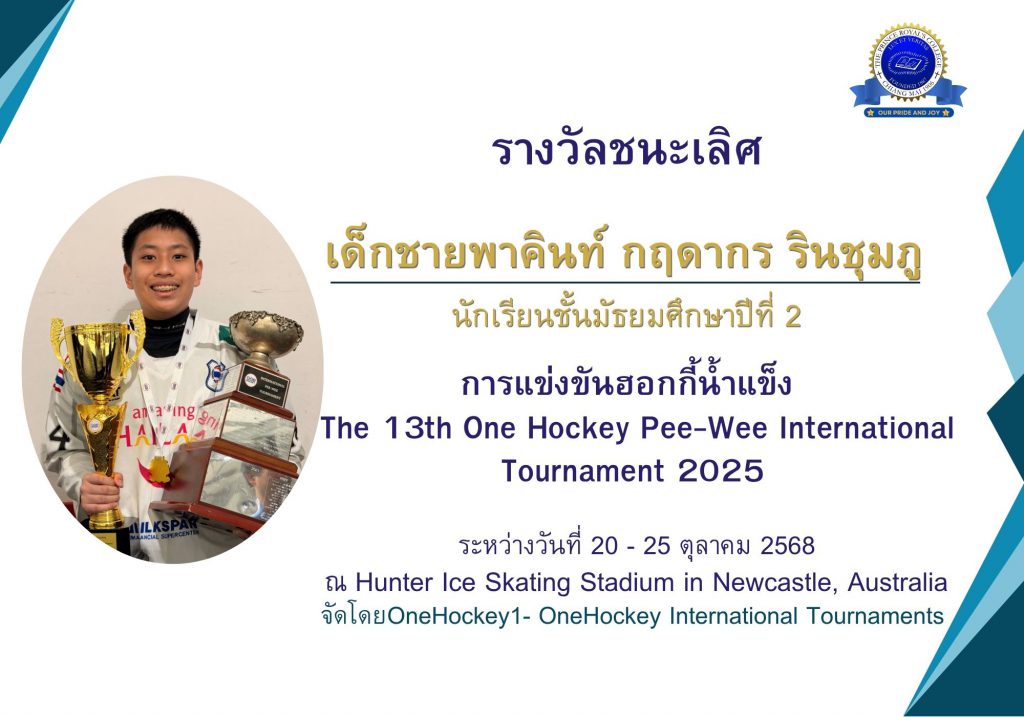 เด็กชายพาคินท์ กฤดากร รินชุมภู รางวัลชนะเลิศ การแข่งขันฮอกกี้น้ำแข็ง The 13th One Hockey Pee-Wee International Tournament 2025