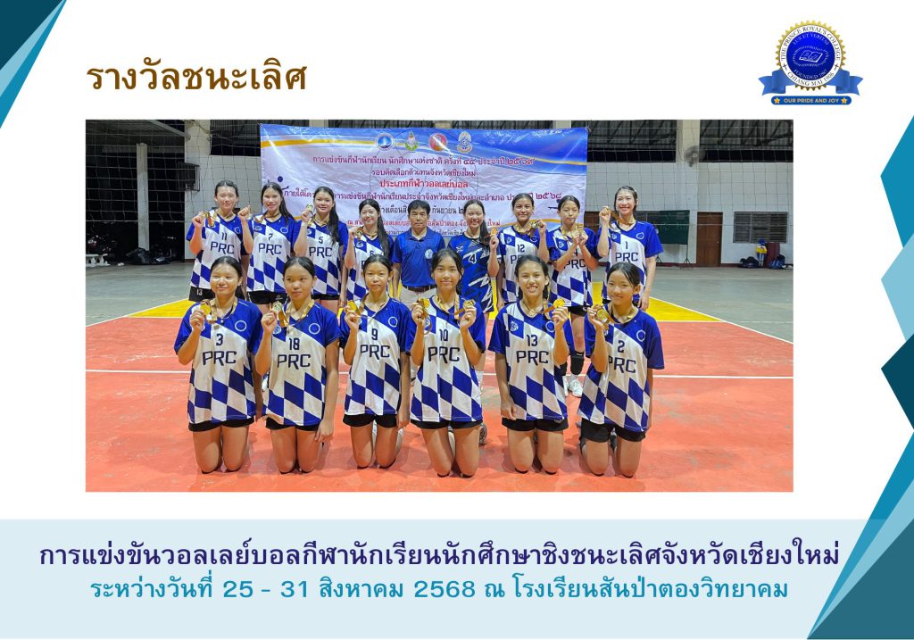 ทีมวอลเลย์บอลโรงเรียนปรินส์รอยแยลส์วิทยาลัย รุ่น 14 ปี หญิง รางวัลชนะเลิศ การแข่งขันวอลเลย์บอลกีฬานักเรียนนักศึกษาชิงชนะเลิศจังหวัดเชียงใหม่