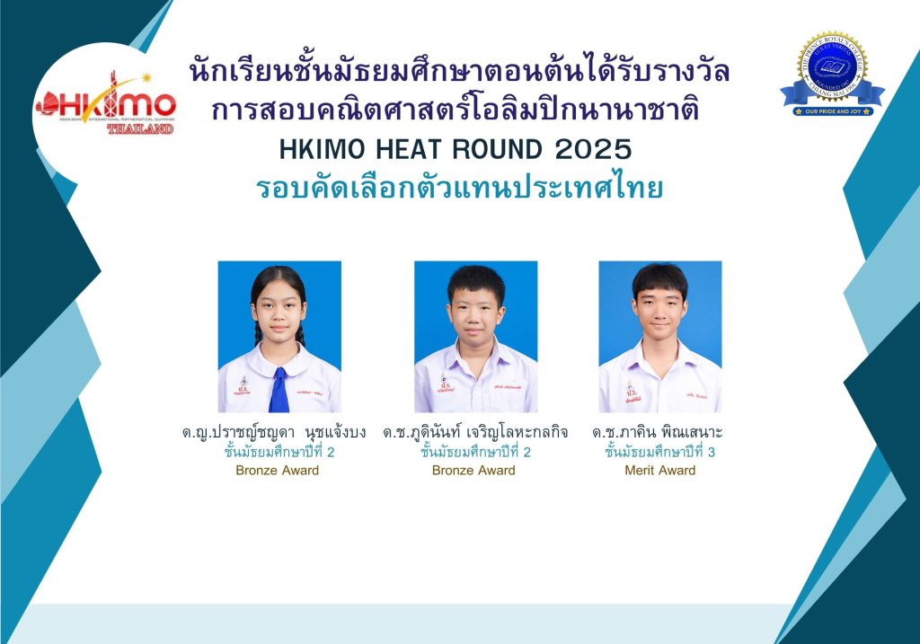 นักเรียนชั้นมัธยมศึกษาตอนต้น ได้รับรางวัลจากการสอบคณิตศาสตร์โอลิมปิกนานาชาติ HKIMO HEAT ROUND 2025 รอบคัดเลือกตัวแทนประเทศไทย