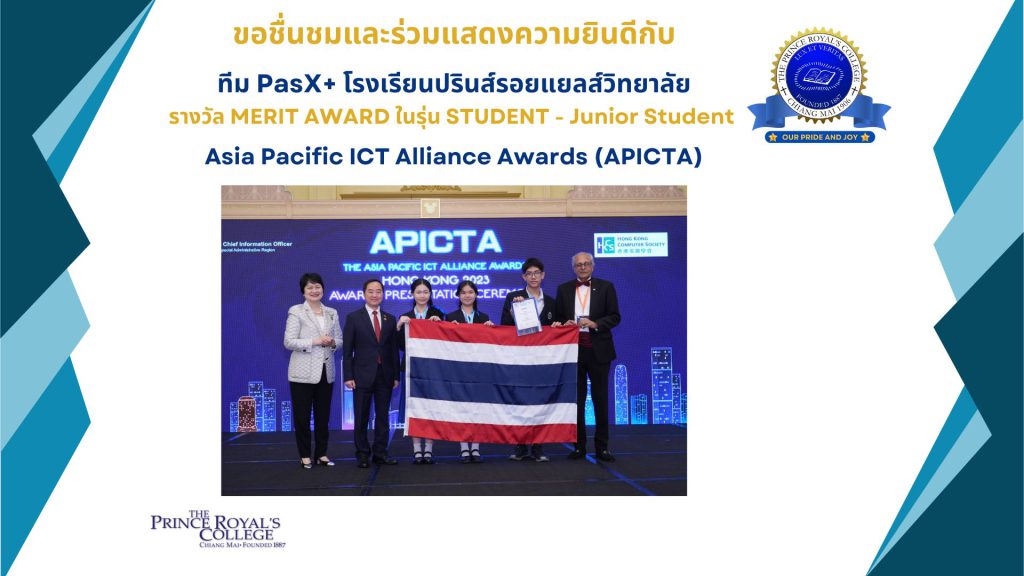 รางวัล MERIT AWARD ในรุ่น STUDENT – Junior Student การแข่งขันงาน Asia Pacific ICT Alliance Awards (APICTA)