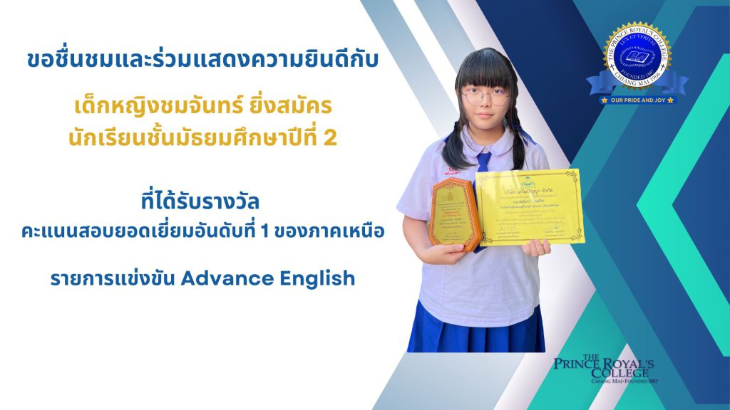 รางวัลคะแนนสอบยอดเยี่ยมอันดับที่ 1 ของภาคเหนือ จากรายการ Advance English