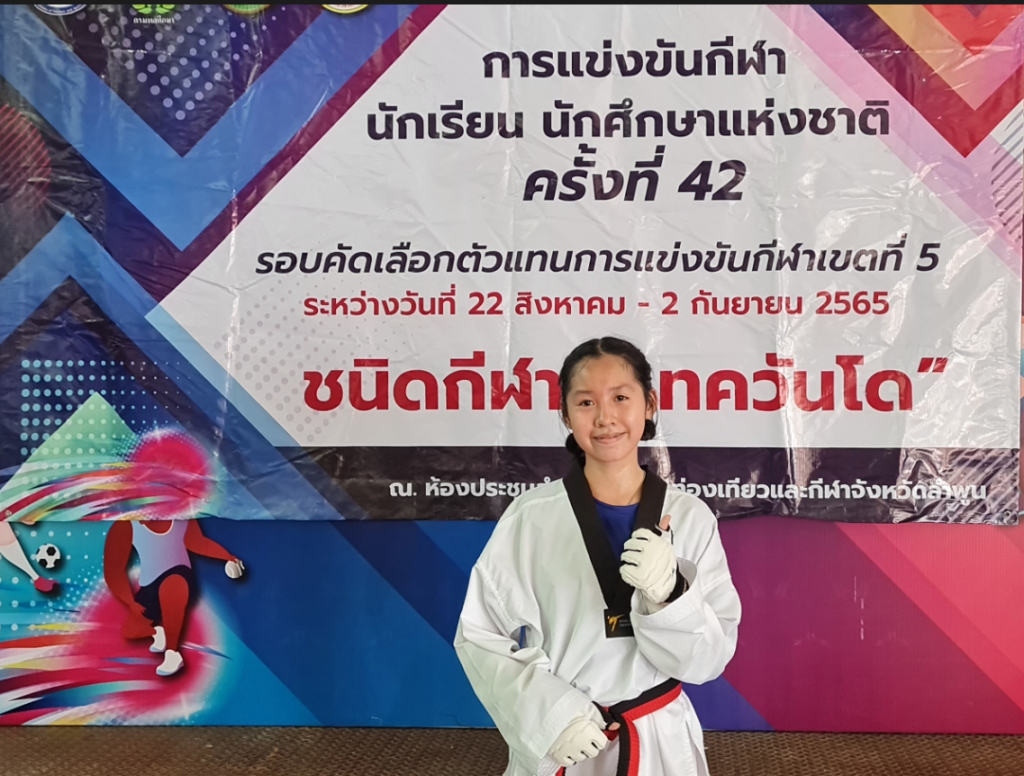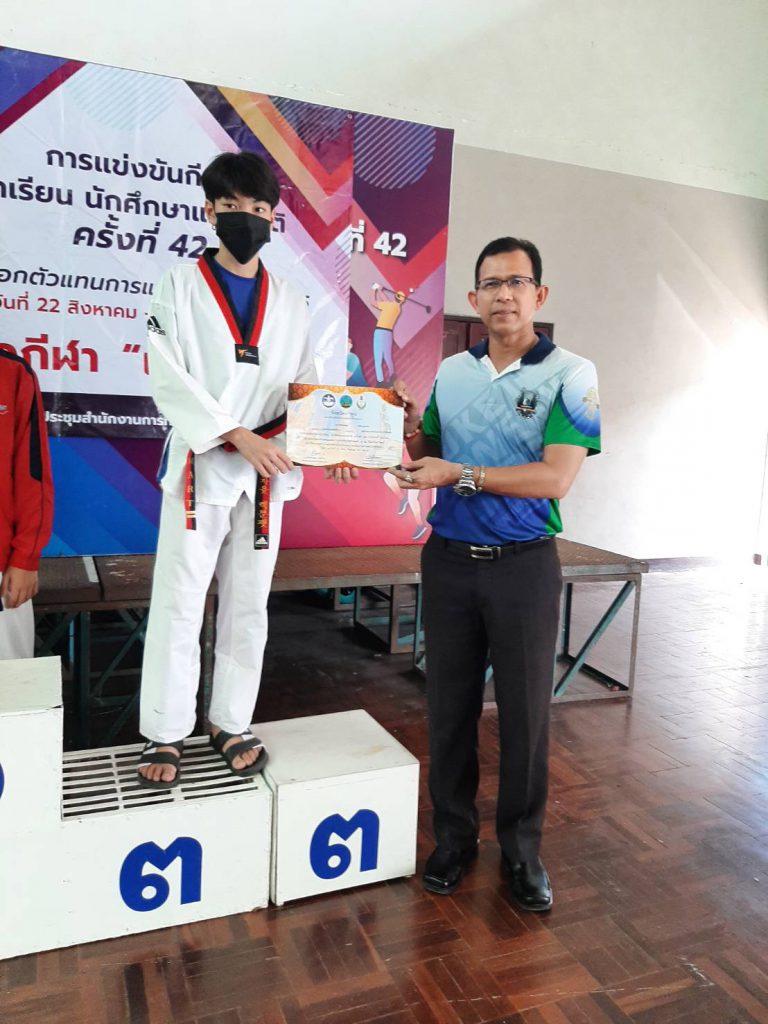 เหรียญทองในการแข่งขันเทควันโด “กีฬานักเรียนนักศึกษาแห่งชาติ ครั้งที่ 42 รอบคัดเลือก เขต 5 ”