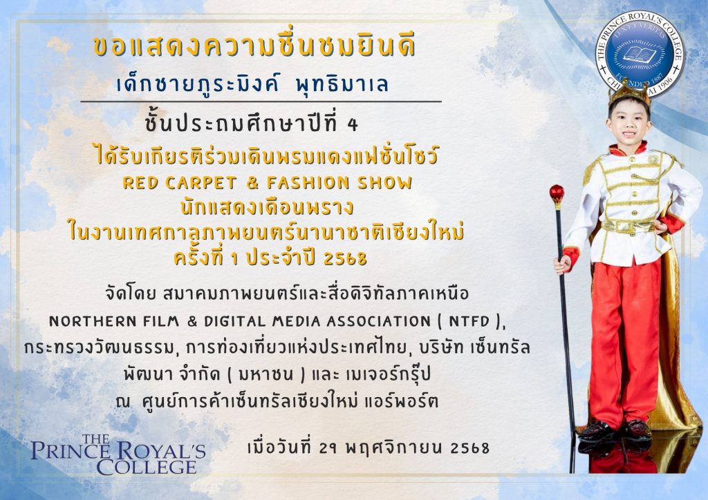 ขอแสดงความยินดีกับ เด็กชายภูระมิงค์ พุทธิมาเล