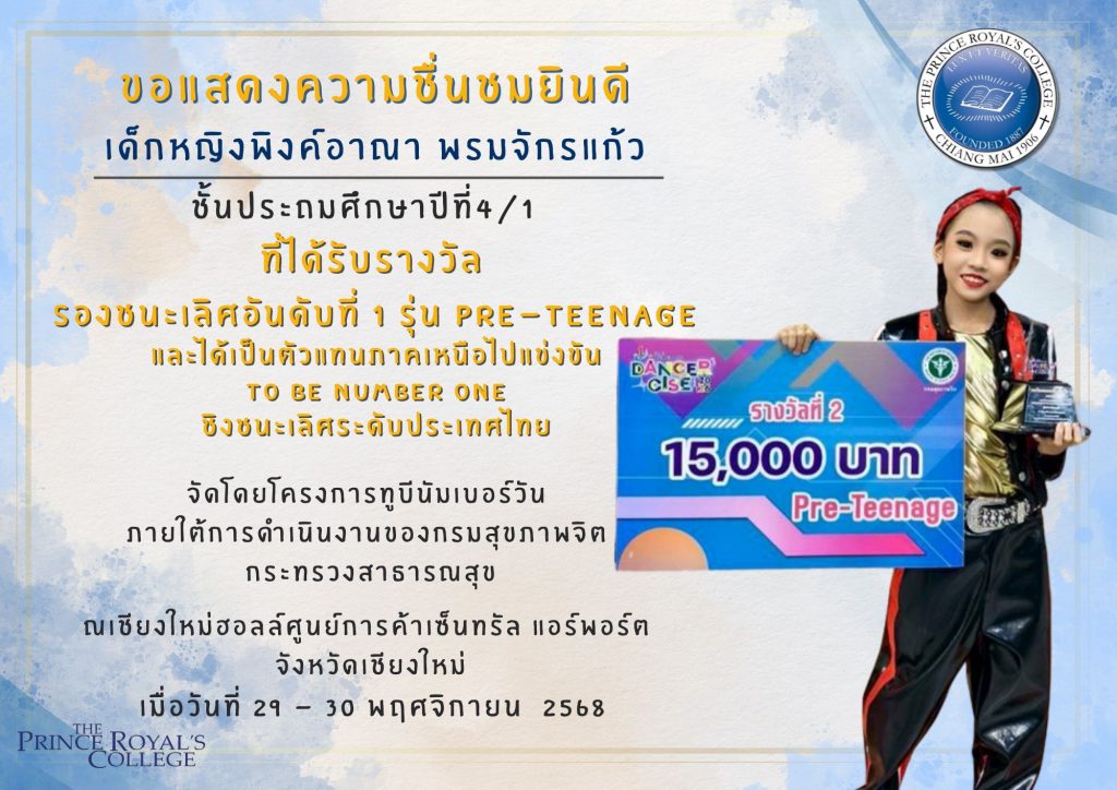เด็กชายณภูรี คำมงคล รางวัล เหรียญทองแดง (Bronze Medal) จากการแข่งขันThailand English Skills Evaluation Test (TESET 2025) โครงการประเมินทักษะภาษาอังกฤษระดับประเทศ ครั้งที่ 6