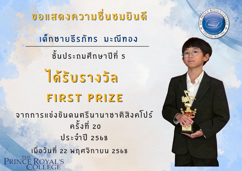 เด็กชายธีรภัทร มะณีทอง ได้รับรางวัล FIRST PRIZE