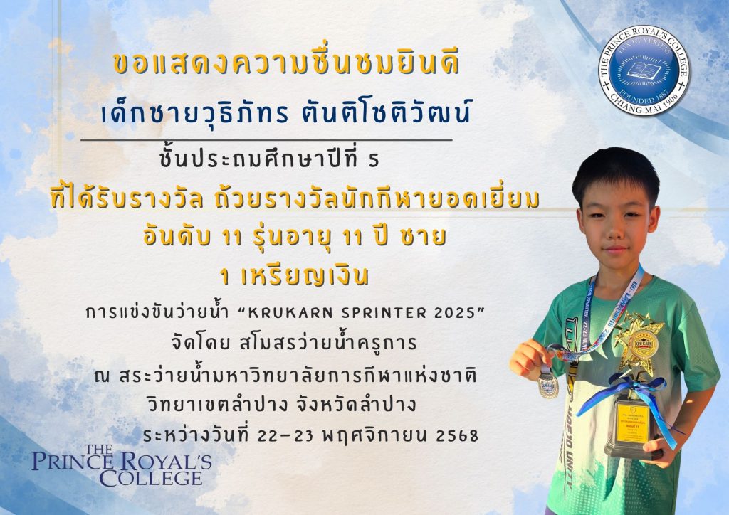 เด็กชายวุธิภัทร ตันติโชติวัฒน์ การแข่งขันว่ายน้ำ “KRUKARN SPRINTER 2025”