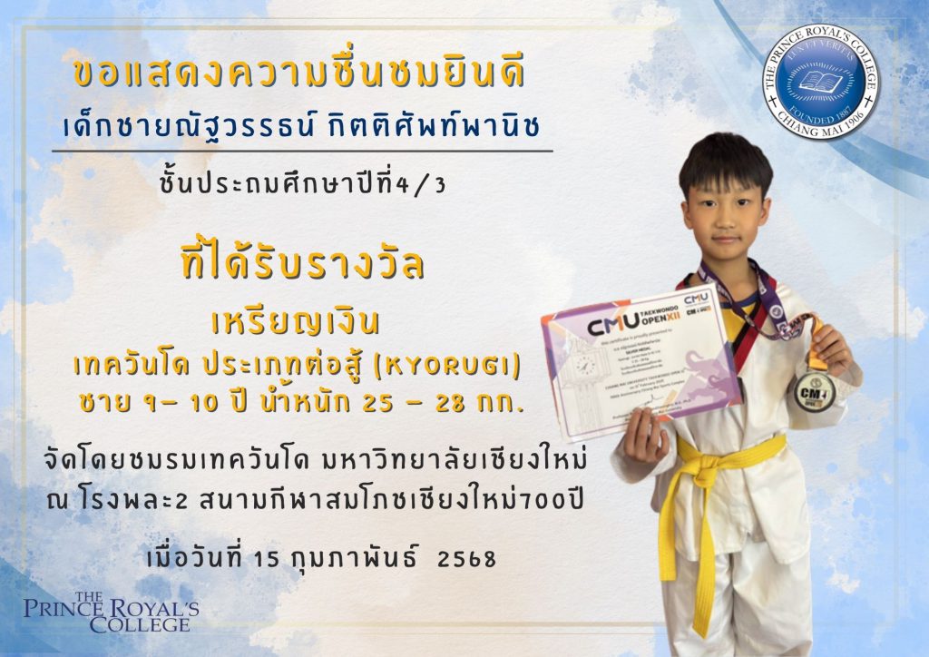 เด็กชายณัฐวรรธน์ กิตติศัพท์พานิช แข่งขัน CMU Taekwondo Open ครั้งที่ 12