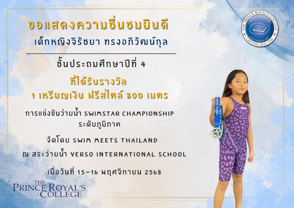 ขอแสดงความยินดีกับ เด็กหญิงจิรัชยา ทรงอภิวัฒน์กุล นักเรียนชั้นประถมศึกษาปีที่ 4