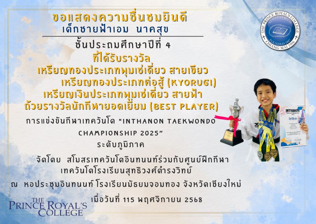 เด็กชายพุฒิเศรษฐ์ อินทะวงศ์ ได้รับรางวัลประกาศนียบัตรเหรียญทองแดง ระดับอายุ 11 – 12 ปี