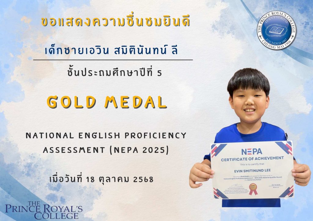 เด็กชายเอวิน สมิตินันทน์ ลี ได้รับรางวัล Gold Medal