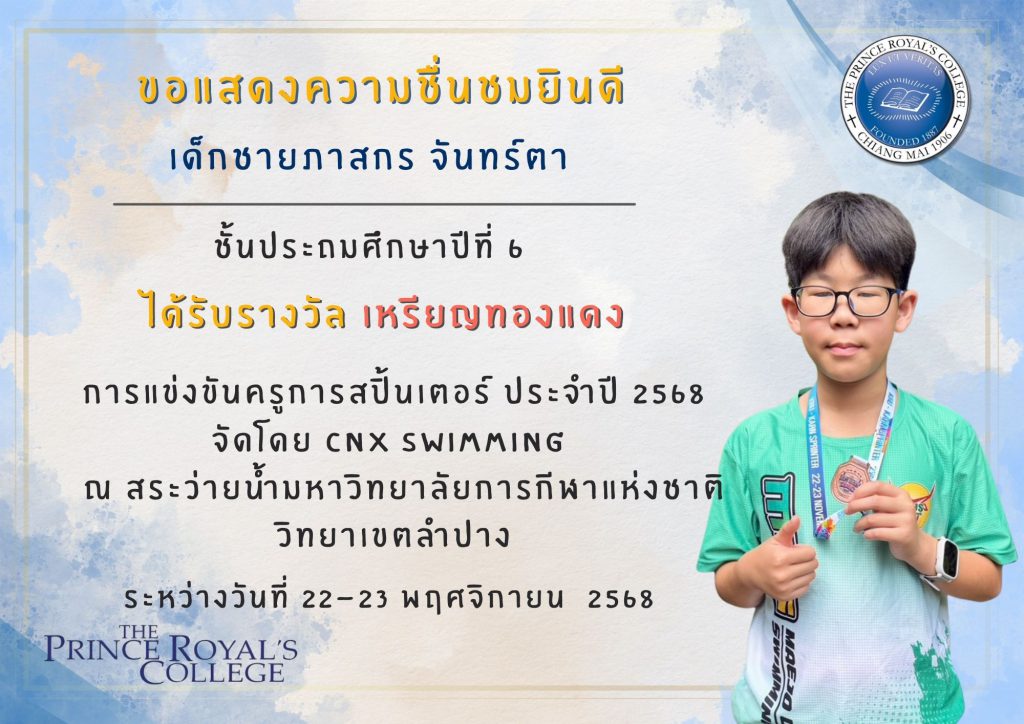 เด็กชายชนนน เดชธรรมรงค์ ได้รับรางวัล 1 เหรียญทองและ 1 เหรียญเงิน