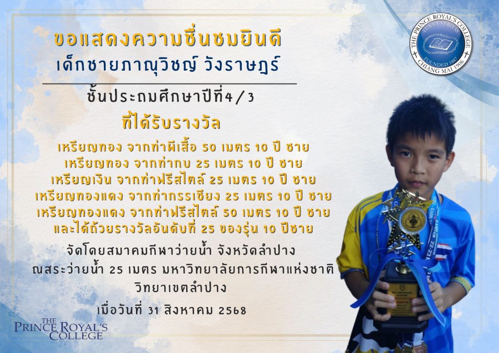 ขอแสดงความยินดีกับเด็กชายธีธัช กาญจนวงศ์ นักเรียนระดับช […]