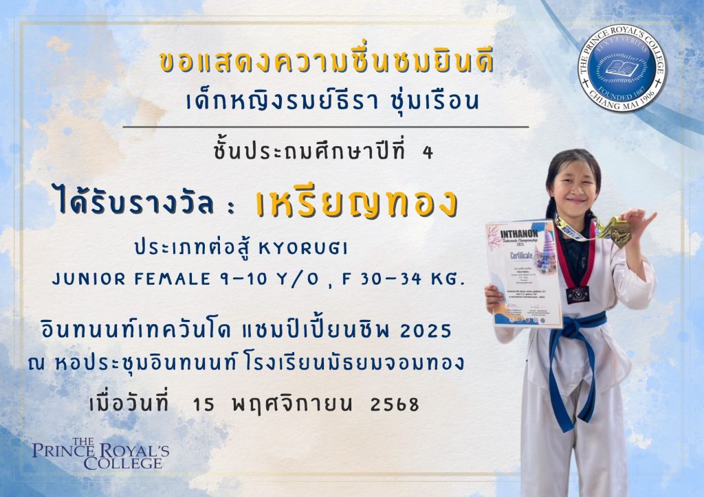 เด็กหญิงรมย์ธีรา ชุ่มเรือน : อินทนนท์เทควันโด แชมป์เปี้ยนชิพ 2025