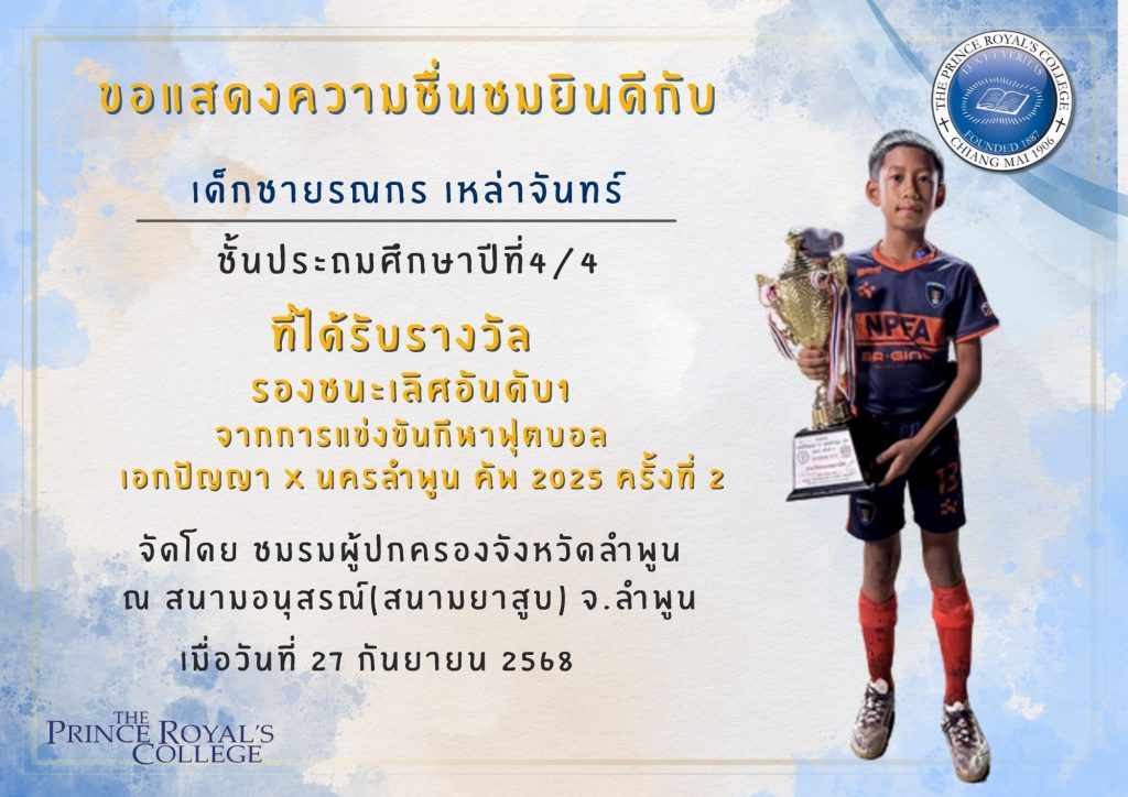 เด็กชายรณกร เหล่าจันทร์ แข่งขันกีฬาฟุตบอล รายการเอกปัญญา x นครลำพูน คัพ 2025 ครั้งที่ 2