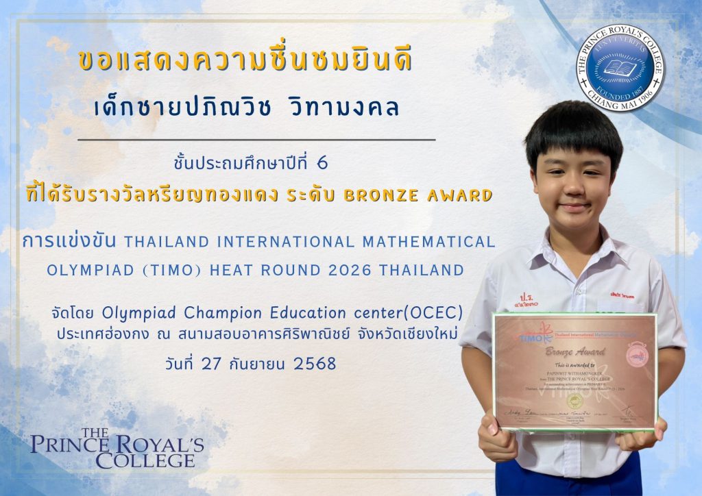 การแข่งขันThailand International Mathematical Olympiad (TIMO) Heat Round 2026 Thailand