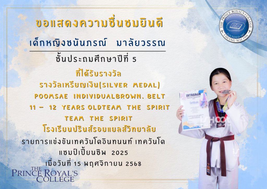 เด็กหญิงชนันภรณ์ มาลัยวรรณ นักเรียนระดับชั้นประถมศึกษาปีที่ 5 ได้รับรางวัล รางวัลเหรียญเงิน (SILVER MEDAL)
