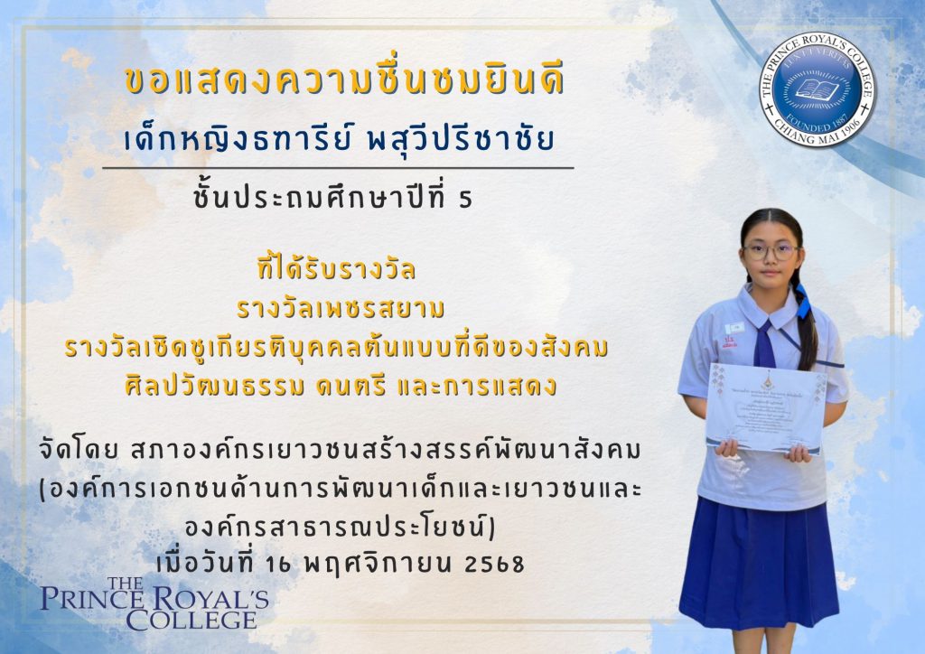 ขอแสดงความชื่นชมและยินดี กับเด็กหญิงพิมพ์ภาณี ดวงจันทร์ […]