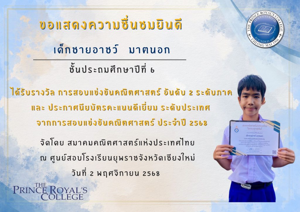 เด็กชายอาชว์ มาตนอก การสอบแข่งขันคณิตศาสตร์ ประจำปี 2568