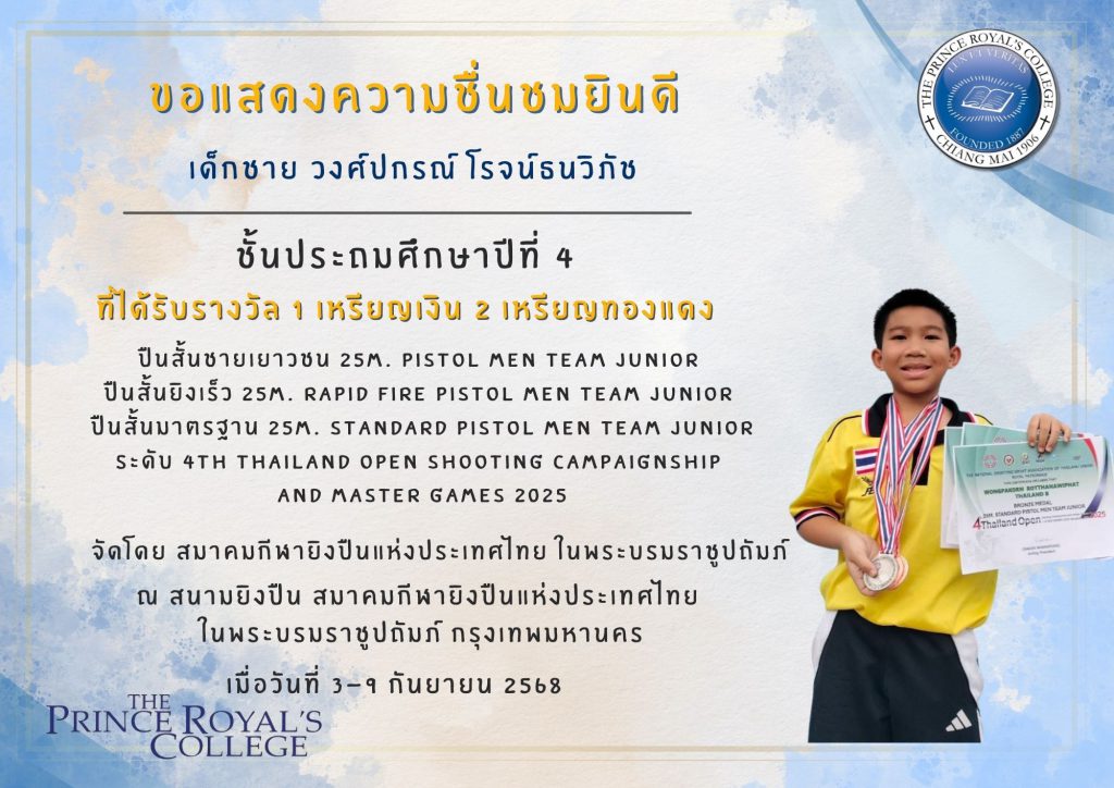 เด็กชาย วงศ์ปกรณ์ โรจน์ธนวิภัช 4th Thailand open Shooting Campaignship and Master Games 2025