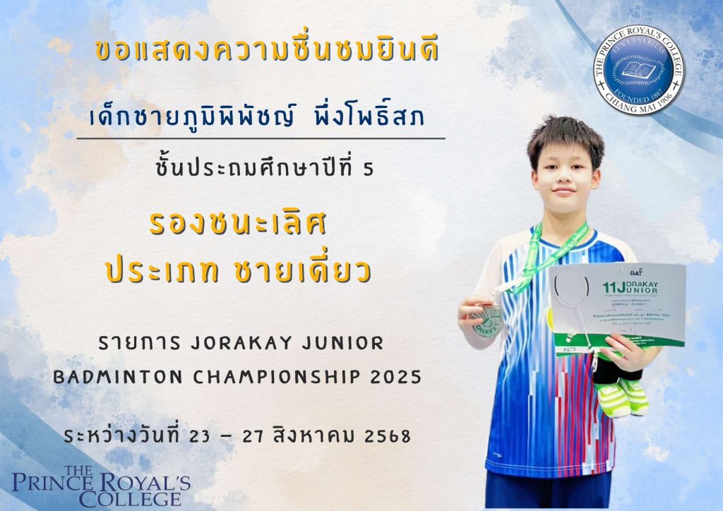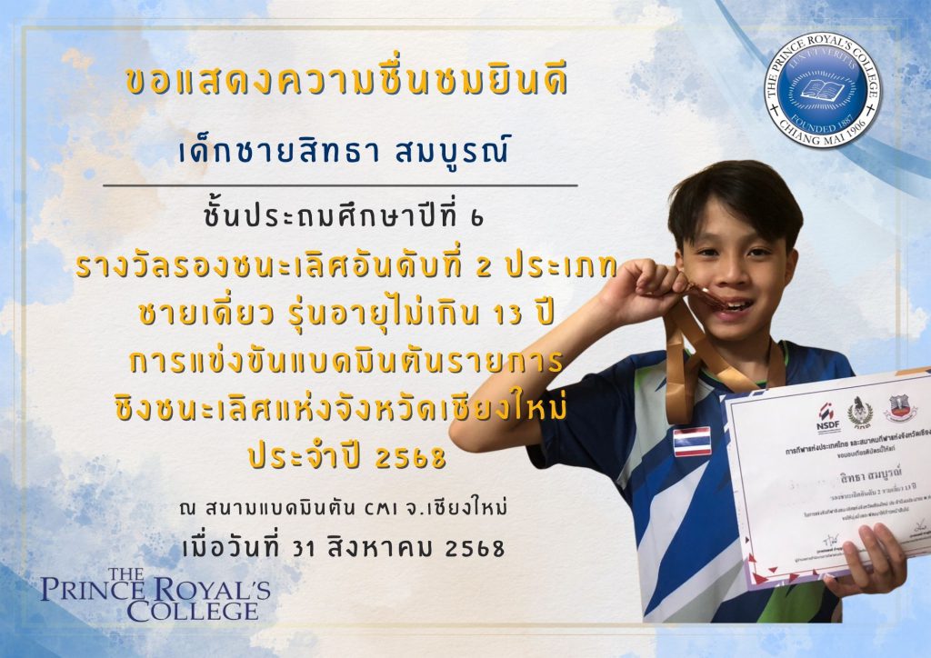 การแข่งขันแบดมินตันรายการชิงชนะเลิศแห่งจังหวัดเชียงใหม่ประจำปี 2568 – เด็กชายสิทธา สมบูรณ์