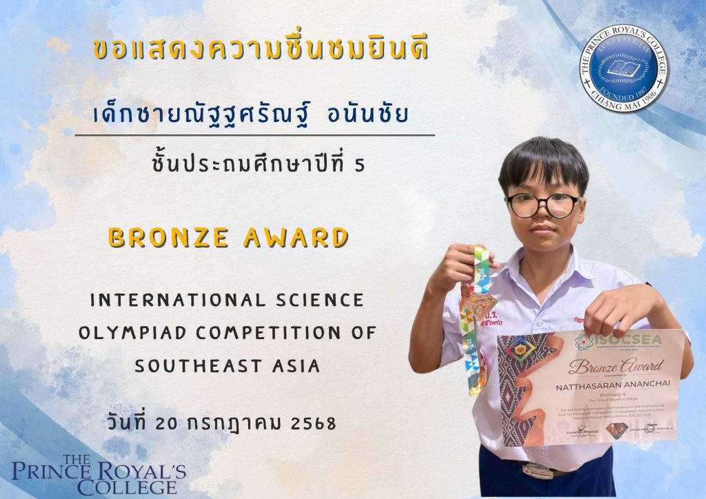 เด็กชายณัฐฐศรัณฐ์ อนันชัย ได้รับรางวัล Bronze Award