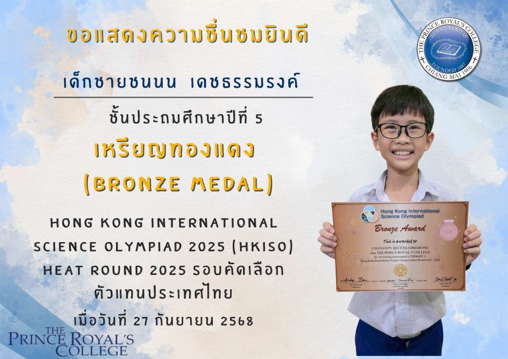 เด็กชายชนนน เดชธรรมรงค์ ได้รับรางวัลเหรียญทองแดง (Bronze Medal)