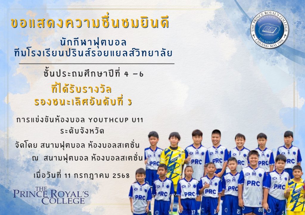 รางวัลรองชนะเลิศอันดับที่ 3 จากการแข่งขัน ห้องบอล YOUTHCUP U11