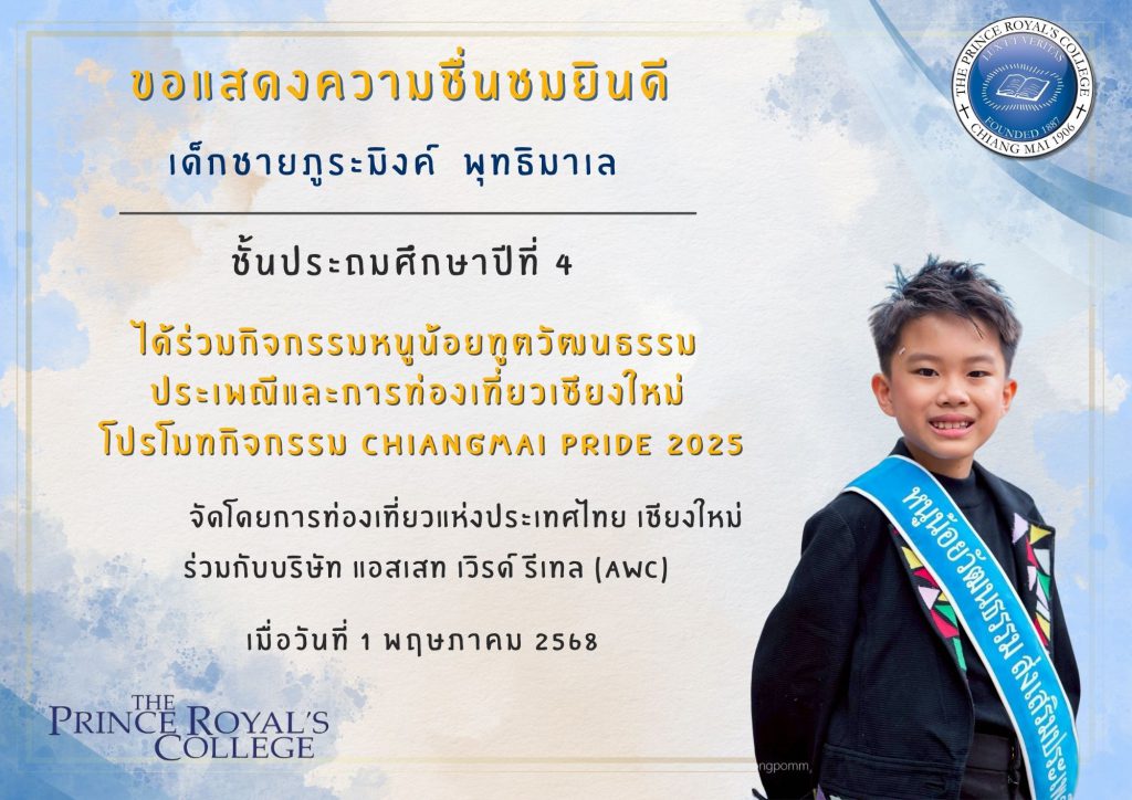 ขอแสดงความยินดีกับ เด็กชายภูระมิงค์ พุทธิมาเล นักเรียนช […]
