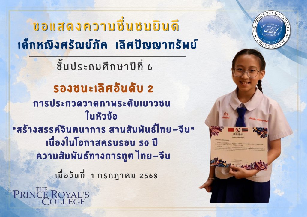 ขอแสดงความชื่นชมยินดี กับเด็กหญิงศรัณย์ภัค เลิศปัญญาทรั […]