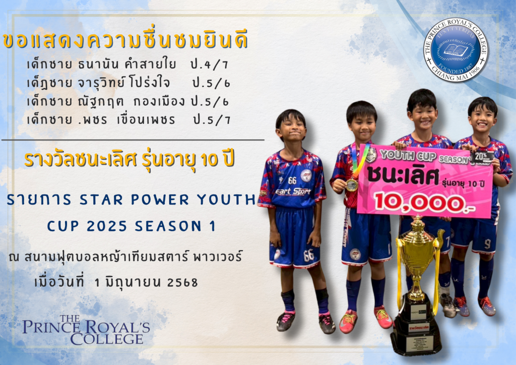 รางวัลชนะเลิศ รุ่นอายุ 10 ปี รายการ Star Power Youth Cup 2025 Season 1 ระดับ ภูมิภาค