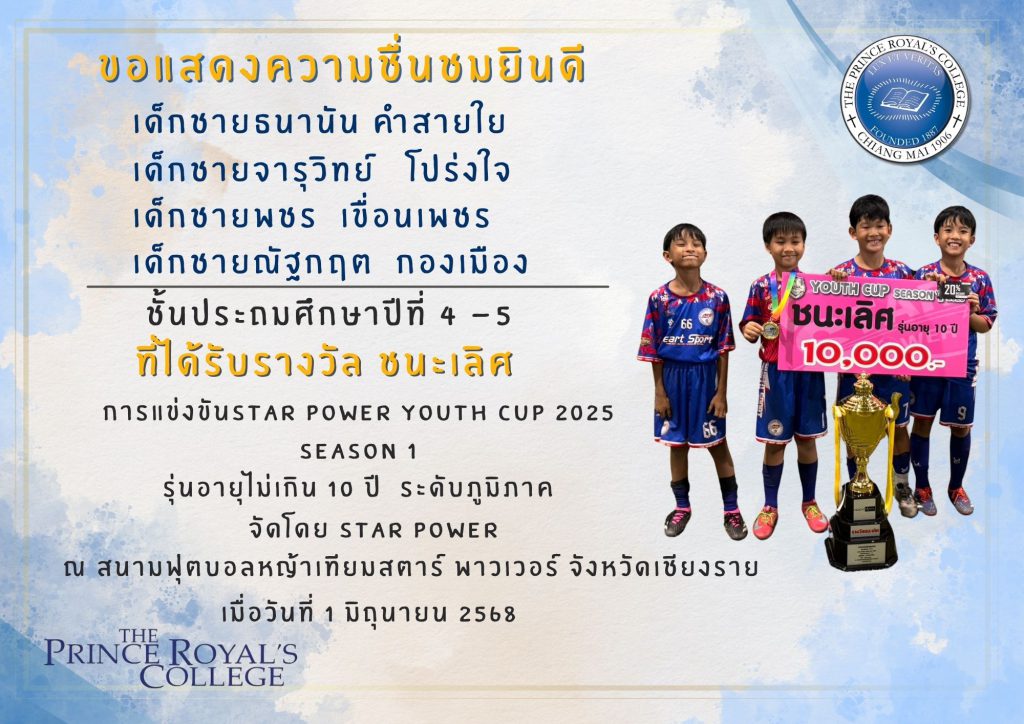 ขอแสดงความยินดีจากการแข่งขัน Star Power Youth Cup 2025 Season 1 ระดับภูมิภาค