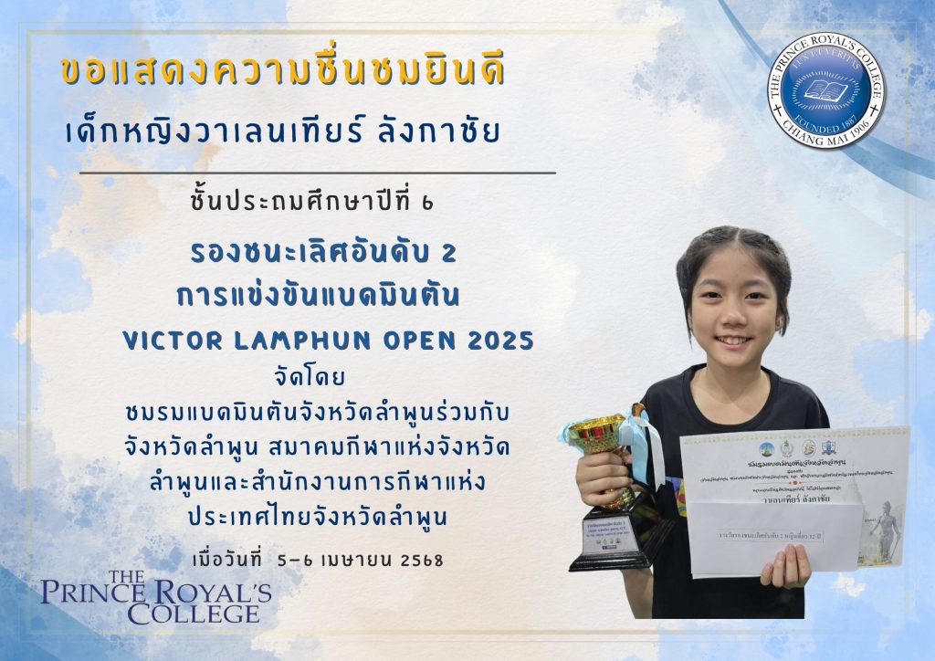 เด็กหญิงวาเลนเทียร์ ลังกาชัย รองชนะเลิศอันดับ 2 การแข่งขันแบดมินตัน VICTOR LAMPHUN OPEN 2025