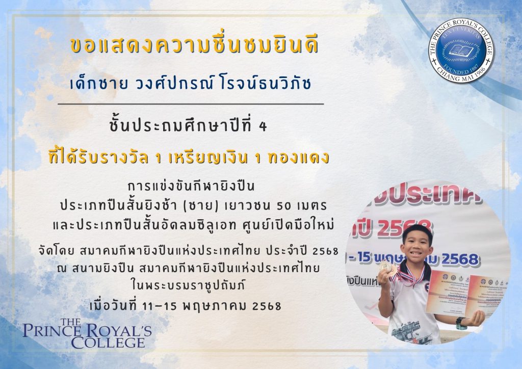 ขอแสดงความยินดีกับ เด็กชาย วงศ์ปกรณ์ โรจน์ธนวิภัช ชั้นป […]
