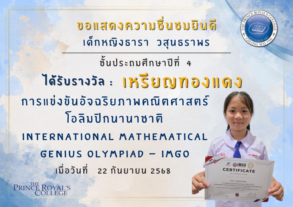 เด็กหญิงธารา วสุนธราพร : การแข่งขัน อัจฉริยภาพคณิตศาสตร์โอลิมปิกนานาชาติ