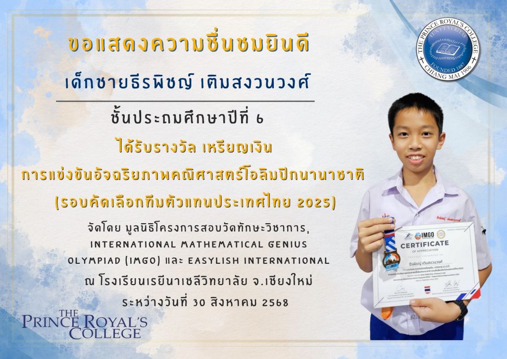 การแข่งขันอัจฉริยภาพคณิศาสตร์โอลิมปิกนานาชาติ (รอบคัดเลือกทีมตัวแทนประเทศไทย 2025) เด็กชายธีรพิชญ์ เติมสงวนวงศ์