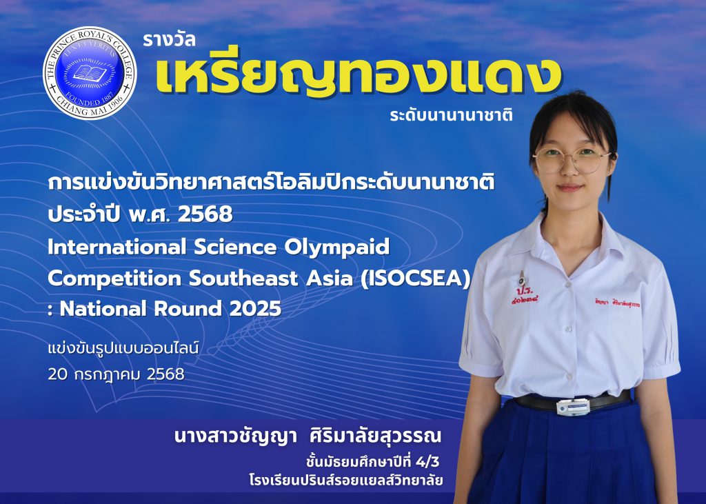 นายสิรวิชญ์ กิตติเฉลิมโรจน์ รางวัลเหรียญทองแดง ระดับนานาชาติ