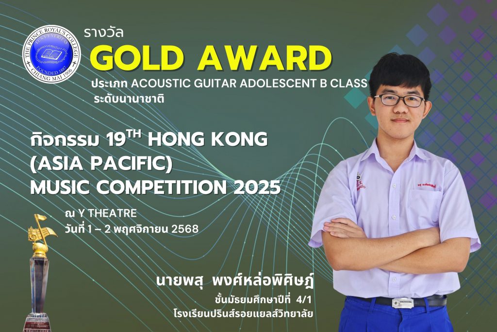 นายพสุ พงศ์หล่อพิศิษฎ์ รับถ้วยรางวัลและใบประกาศ ระดับ GOLD AWARD